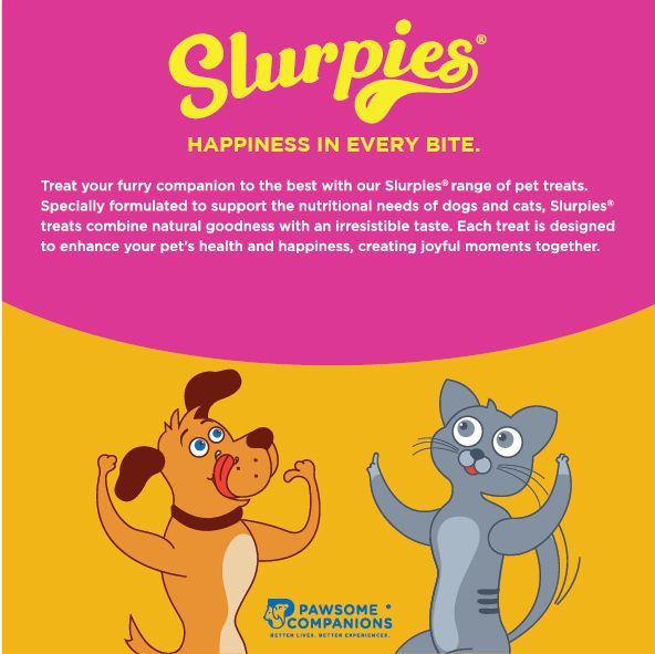 Treat your furry companion to the best with our Slurpies® range of pet treats. Specially formulated to support the nutritional needs of dogs and cats, Slurpies® treats combine natural goodness with an irresistible taste. Each treat is designed to enhance your pet’s health and happiness, creating joyful moments together.