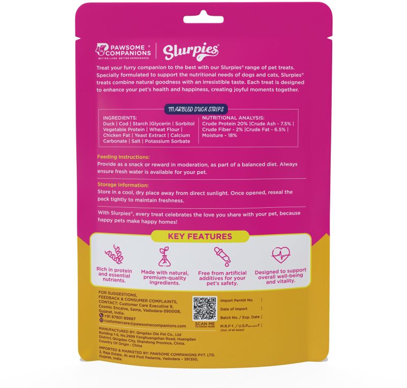 Slurpies Marbled Duck Strips 70 gms | Natural Dog Treats with Fresh Meat, Natural Flavors, and Preservatives | Treats for Dogs