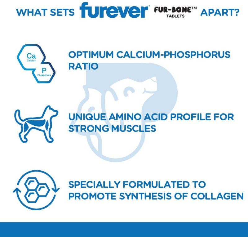 Furever Fur-Bone 30s Bone Health Tablets for Dogs, Cats, and Pets with Calcium, Phosphorus, Iron, Vitamins, and Amino Acids