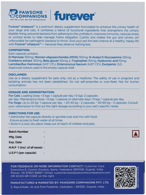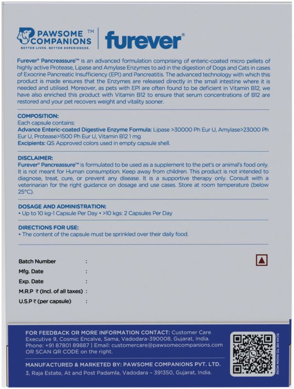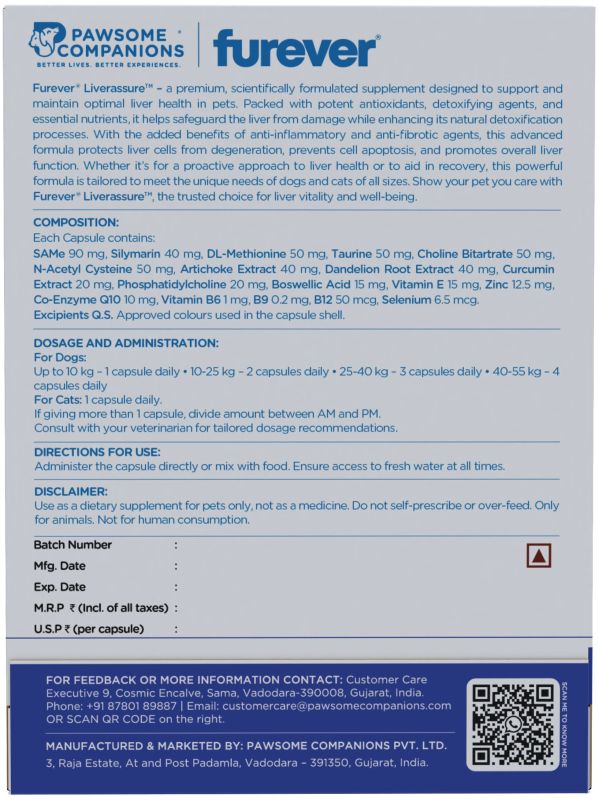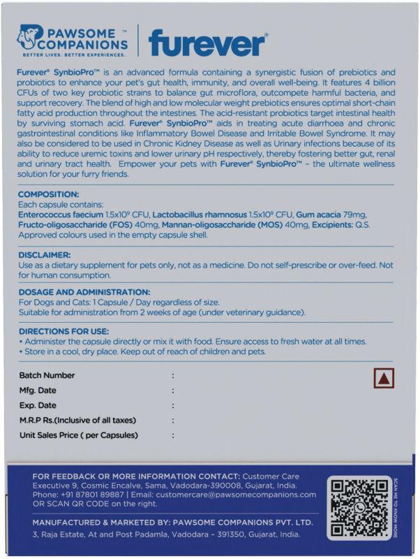 Leading Manufacturers, Exporters, Wholesaler and Importer of Furever Fur Bone Tablet, Furever Fur Calming Capsule, Furever Fur Wellbeing Tablet, Furever Liverassure Capsules, Furever Pancreassure Capsules, Furever Synbiopro Capsules and Furever Uriassure Capsules from Vadodara.