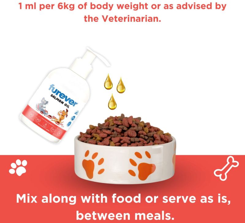 Furever Salmon Oil 500 ml for Dogs and Cats—Natural, Cold-Pressed Omega 3 & 6 Supplement for Strong Hair, Lustrous Coat, Improved Mobility & Better Skin, Joint, Eye, Brain, Cardiac & Immune Health