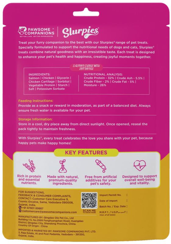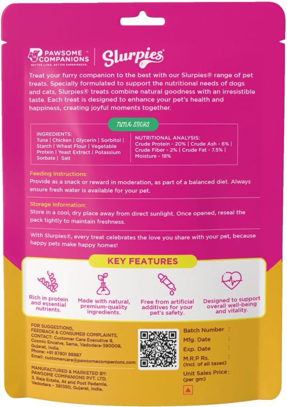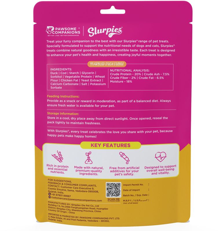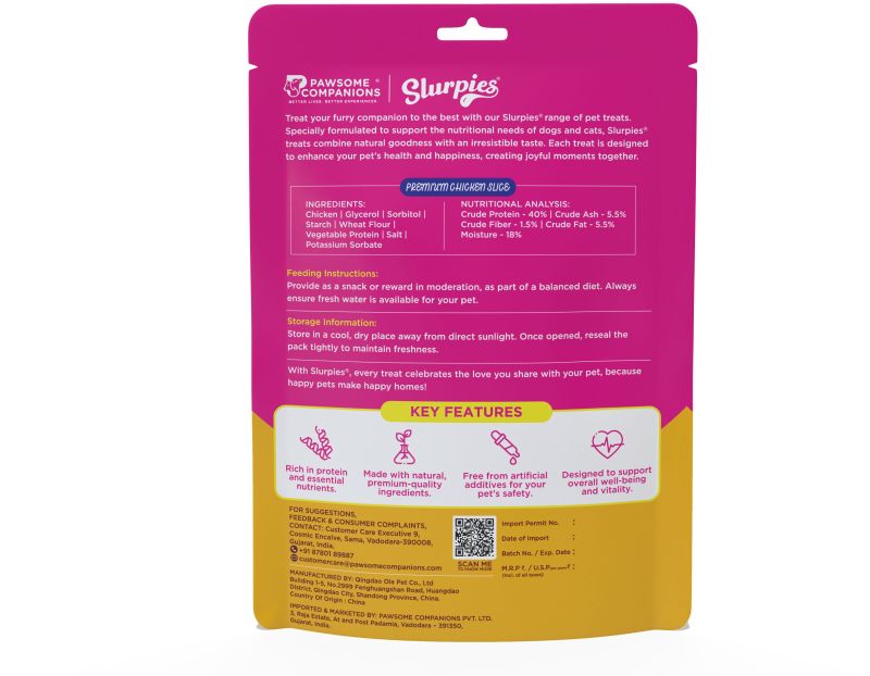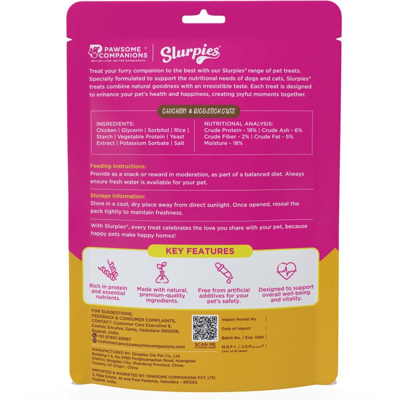 Leading Manufacturers, Exporters, Wholesaler and Importer of 70 Gm Slurpies Chicken & Rice Stick Cuts, 70 Gm Slurpies Chicken and Rice Sticks, 70 Gm Slurpies Chicken Cubes, 70 Gm Slurpies Chicken Sushi Rolls, 70 Gm Slurpies Duck Cubes Dog Food, 70 Gm Slurpies Duck Sticks Dog Food, 70 Gm Slurpies Lamb Cubes, 70 Gm Slurpies Lamb Sticks, 70 Gm Slurpies Marbled Chicken Cubes, 70 Gm Slurpies Marbled Chicken Wrapped Calcium Bone, 70 Gm Slurpies Marbled Duck Cubes, 70 Gm Slurpies Marbled Duck Strips, 70 Gm Slurpies Marbled Duck Wrapped Calcium Bone, 70 Gm Slurpies Mini Chicken Sandwich, 70 Gm Slurpies Premium Chicken Jerky, 70 Gm Slurpies Premium Chicken Slice, 70 Gm Slurpies Salmon Cubes With Soft Bone, 70 Gm Slurpies Soft Chicken Strips and 70 Gm Slurpies Tuna Sticks from Vadodara.