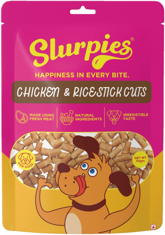 Slurpies Chicken & Rice Stick Cuts 70 gms| Natural Dog Treats with Fresh Meat, Natural Flavors, and Preservatives | Treats for Dogs