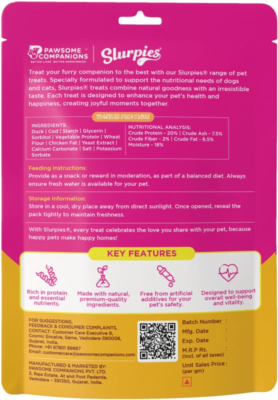 Slurpies Marbled Duck Cubes 70 gms for Dogs | Natural Dog Treats with Fresh Meat, Natural Flavors, and Preservatives | Treats for Dogs