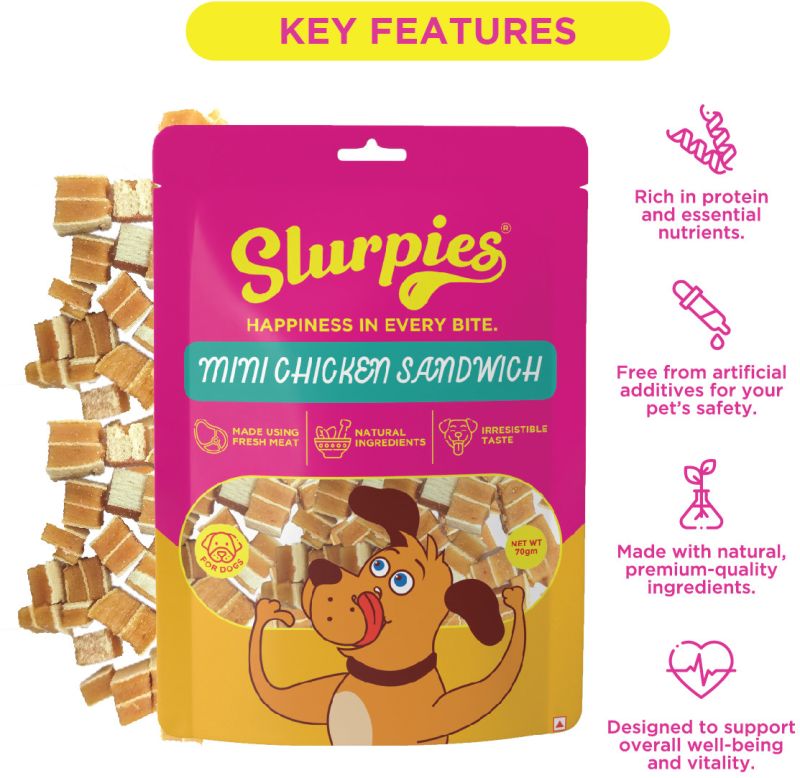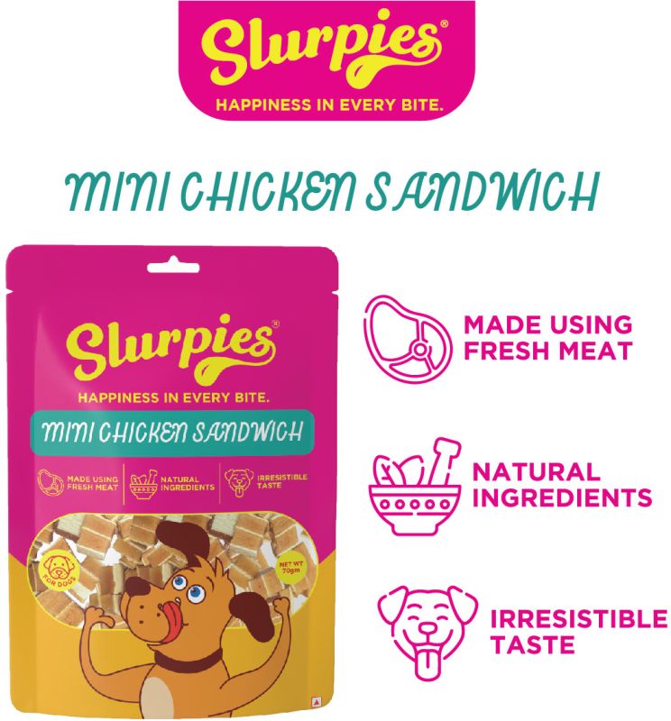 Slurpies Mini Chicken Sandwich 70 gms for Dogs | Natural Dog Treats with Fresh Meat, Natural Flavors, and Preservatives | Treats for Dogs of All Life Stages, 1 Count