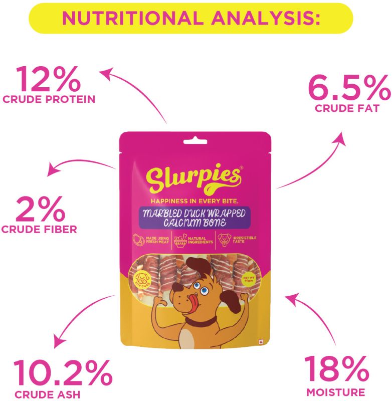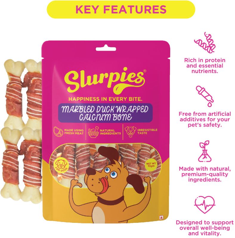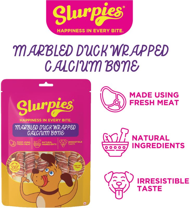 Slurpies Marbled Duck Wrapped Calcium Bone 70 gms | Natural Dog Treats with Fresh Meat, Natural Flavors, and Preservatives | Treats for Dogs