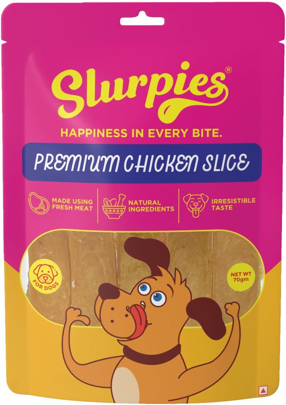Slurpies Premium Chicken Slice 70 gms | Natural Dog Treats with Fresh Meat, Natural Flavors, and Preservatives | Chicken Jerkies for Dogs